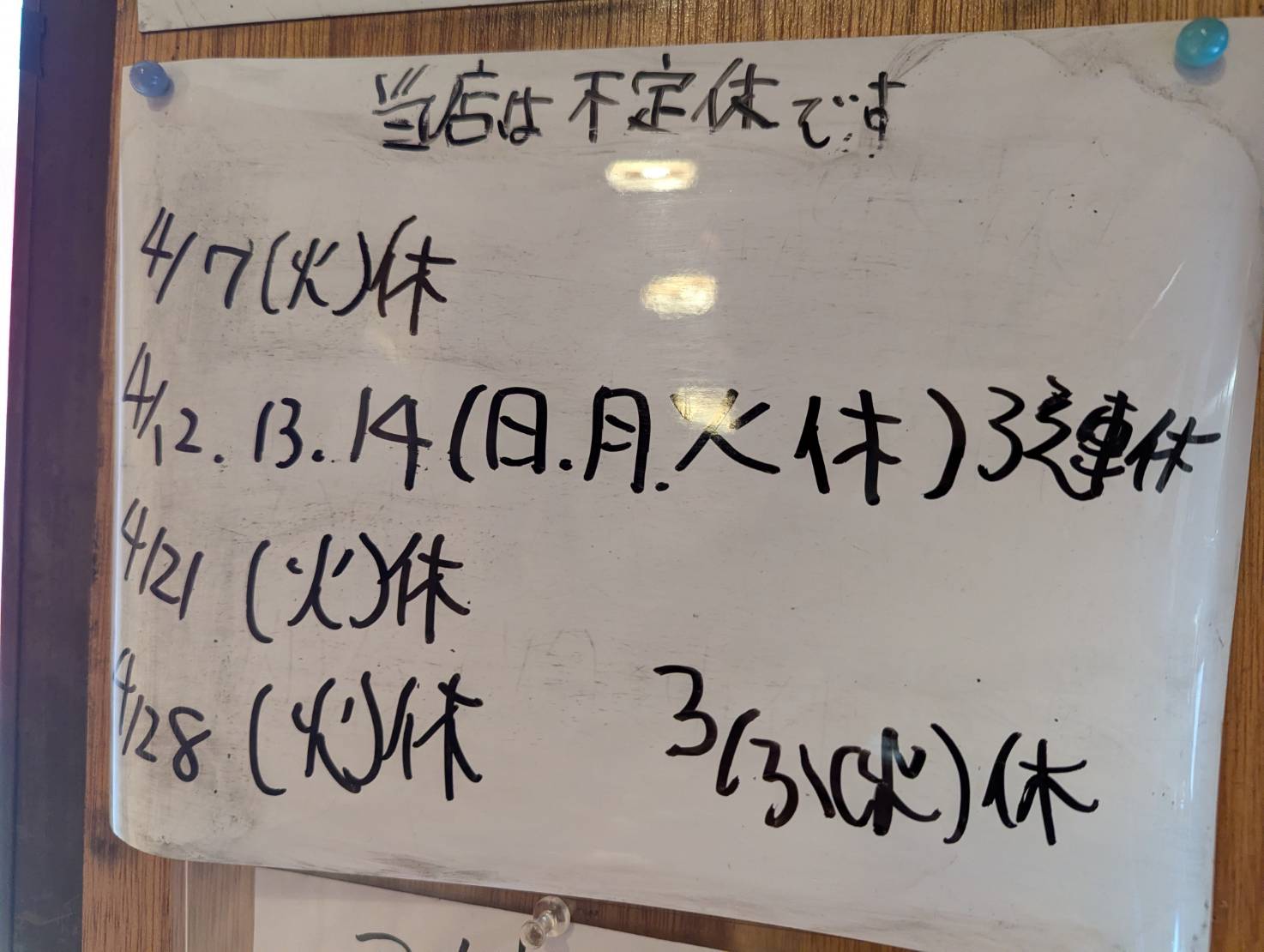 3月/4月の定休日について